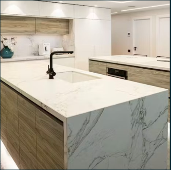 Rapport qualité-prix optimal : Offre l’apparence du marbre haut de gamme à une fraction du coût, tout en surpassant ses propriétés physiques.